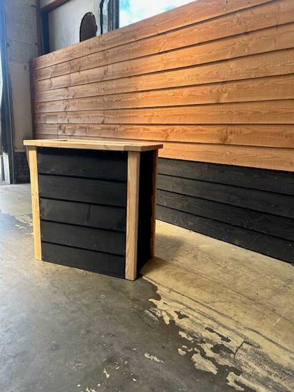 Verkrijgbaar in blank douglas hout of zwart gecoat douglas hout.